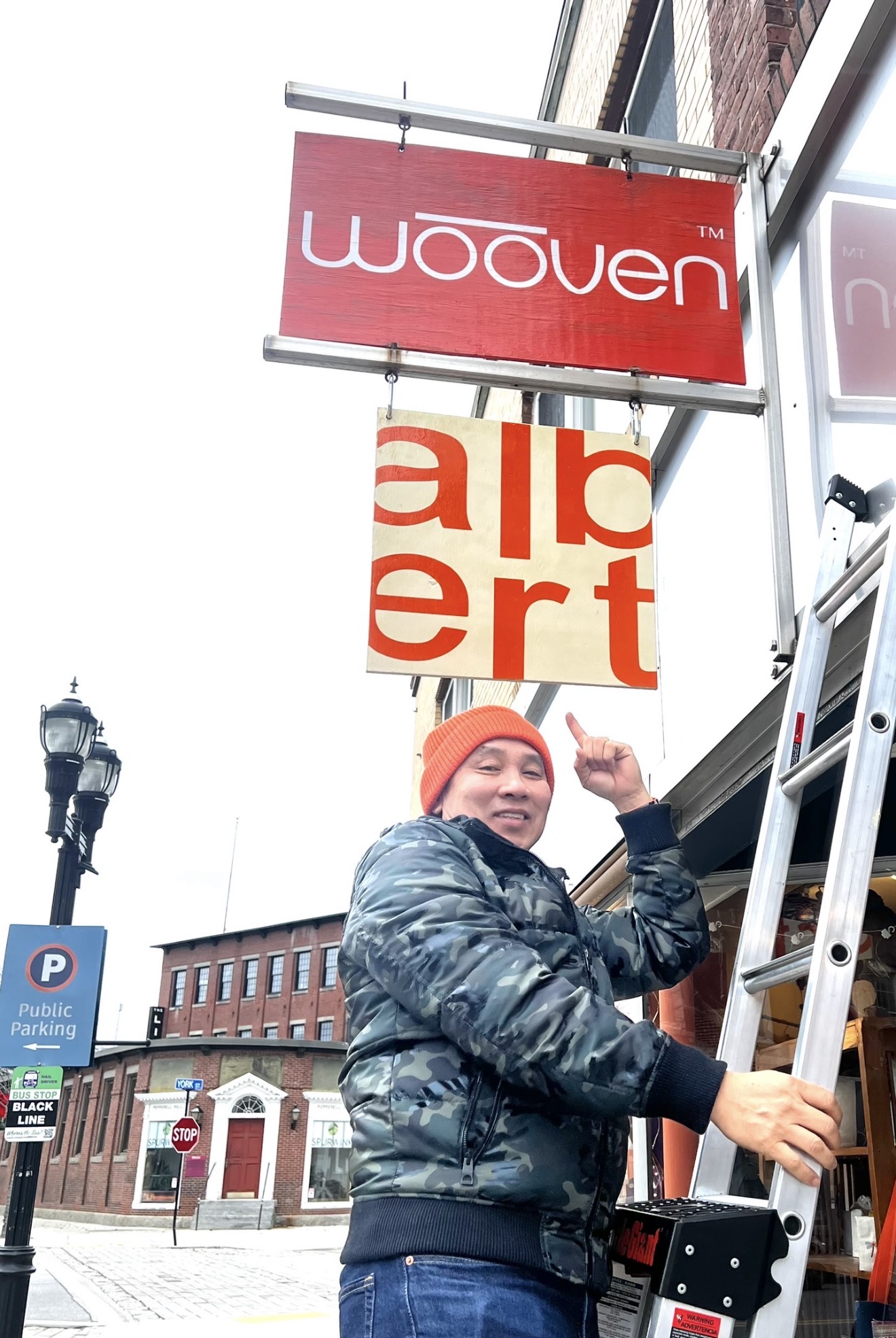 As creative director, he led product design for U.S. wholesale distribution, building a client list that included Saks Fifth Avenue, the Metropolitan Museum of Art, and Crate & Barrel. The export business flourished for decades before evolving into retail. In 2020, Wooven opened its first storefront in Biddeford, Maine, followed by a second location in Kennebunk Lower Village in 2024. Today, the Kennebunk shop features an expanded collection of Albert’s original clothing and accessories, many created in his on-site tailoring workshop. Albert was honored in 2023 by Greenlight Maine’s Elevating Voices series for his contributions to Maine’s diverse and creative business community.